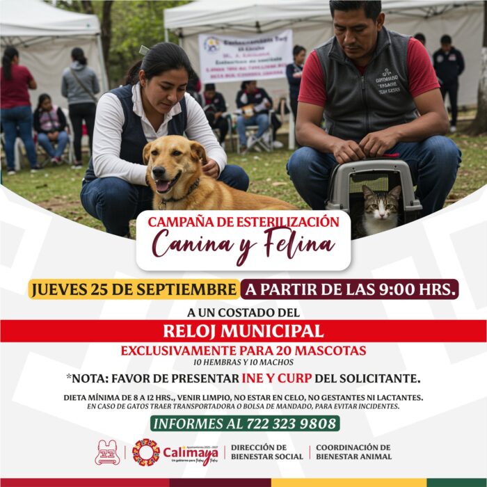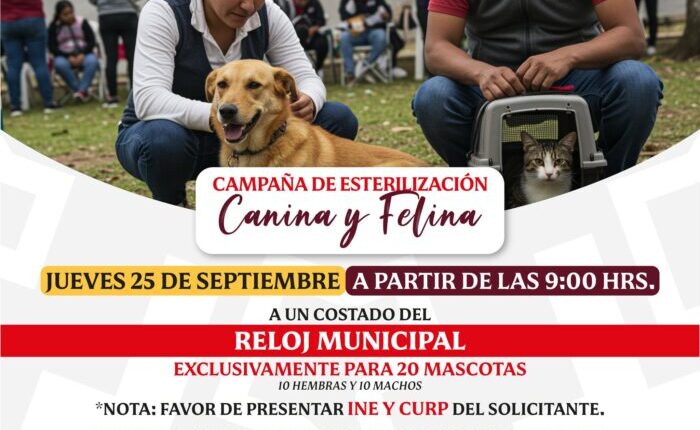 Este jueves 25 de septiembre tendremos Jornada de Esterilización Canina y Felina a partir de las 9:00 hrs.