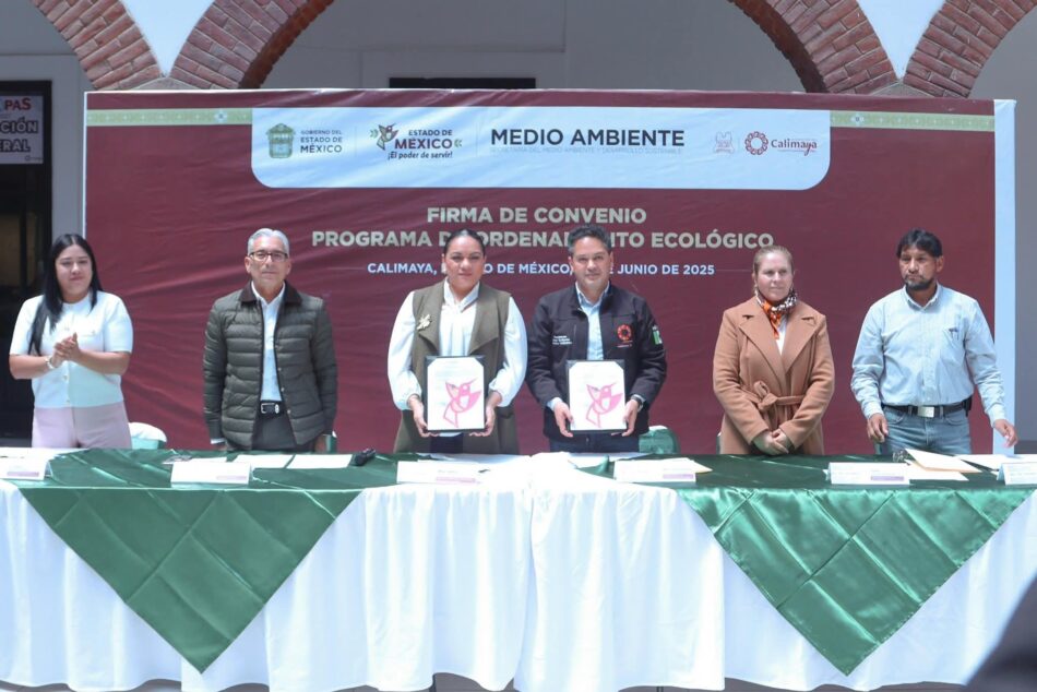 Con el propósito de impulsar un desarrollo ordenado y sustentable, el presidente municipal de Calimaya, Omar Sánchez, firmó este miércoles un convenio de coordinación con la secretaria del Medio Ambiente del Estado de México, Alhelí Arronis, para la elaboración del Programa de Ordenamiento Ecológico Local.