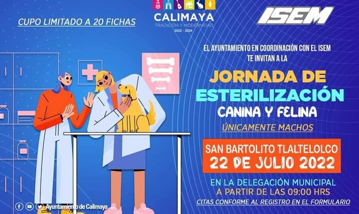 🔵 Se parte de la #JornadaDeEsterilizacion canina y felina 🐶🐱 «SOLO MACHOS» este 22 de julio 2022, en un horario de 09:00 a 16:00 hrs.
