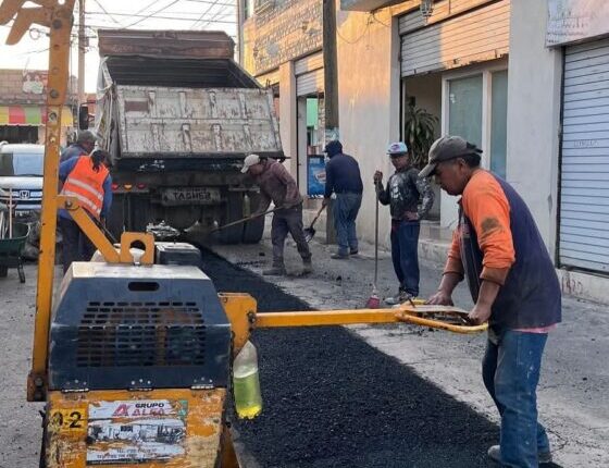 En esta ocasión, los trabajos de mantenimiento se han centrado en la calle Ignacio Zaragoza, en la comunidad de San Andrés Ocotlán, donde cuadrillas de trabajadores han realizado labores de bacheo para optimizar la circulación vehicular y peatonal.