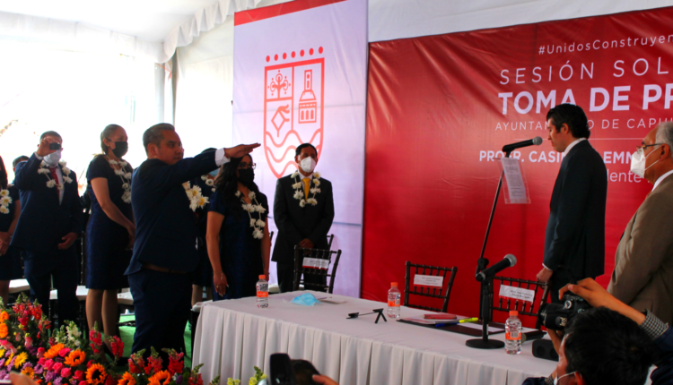 CAPULHUAC, Estado de México.- En la explanada de la plaza Hombres Ilustres, Casimiro Emmanuel Alvarado Díaz rindió protesta como presidente municipal de Capulhuac para el periodo 2022-2024.