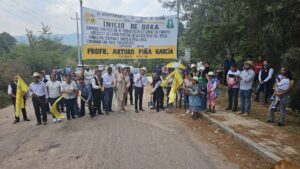 Al término de la gira de trabajo, las autoridades iniciaron la pavimentación del camino que conduce de la casa de la señora Emilia Marcelino, rumbo a Mesa Chica.