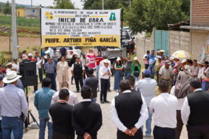 Villa de Allende, Estado de México.- «Con cargo o sin cargo, vamos a seguir trabajando por Villa de Allende» así lo aseguró el alcalde Arturo Piña García, al encabezar una gira de trabajo para iniciar la edificación de obra pública en las comunidades El Puerto Lengua de Vaca, así como en San Pablo Malacatepec.