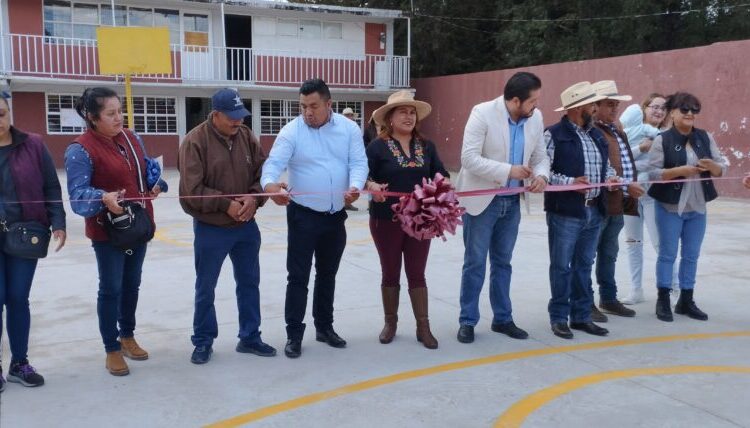 En el cierre de la gira, el gobierno municipal inició la construcción de techado en el área de impartición de educación física, en la secundaria Jesús González Ortega, de Santa María Tetitla.