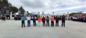 Junto con integrantes del cabildo, asì como de personal del ayuntamiento, Erika Sevilla arribó a la escuela secundaria número 416, Adolfo López Mateos, ubicada en San Mateo Mozoquilpan, para dar el banderazo inicial a la edificación del techado para el área de impartición de educación física.