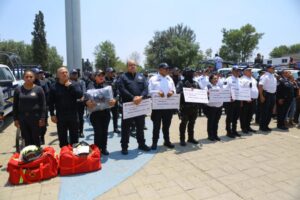 “Nuestro horizonte es renovar en total el equipamiento de cada trabajadora y trabajador. Gracias por ayudarnos a servir y cuidar del pueblo de Ecatepec, en sus manos está la seguridad de la gente, confiamos en que juntos vamos a hacer de nuestra comunidad una ciudad más segura y en paz”, expresó.
