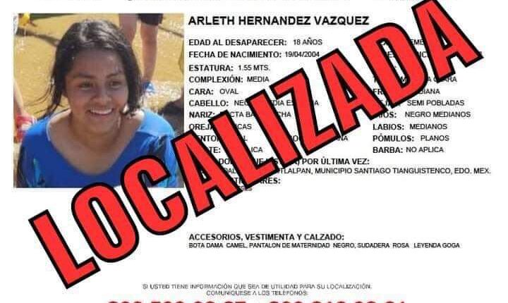 Es localizada Arleth Hernández, joven extraviada de Tianguistenco