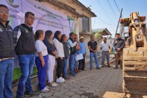*Junto con síndico y regidores, el alcalde Rausel Cervantes inició los trabajos de pavimentación de la calle Vicente Villada en Maxtleca de Galeana