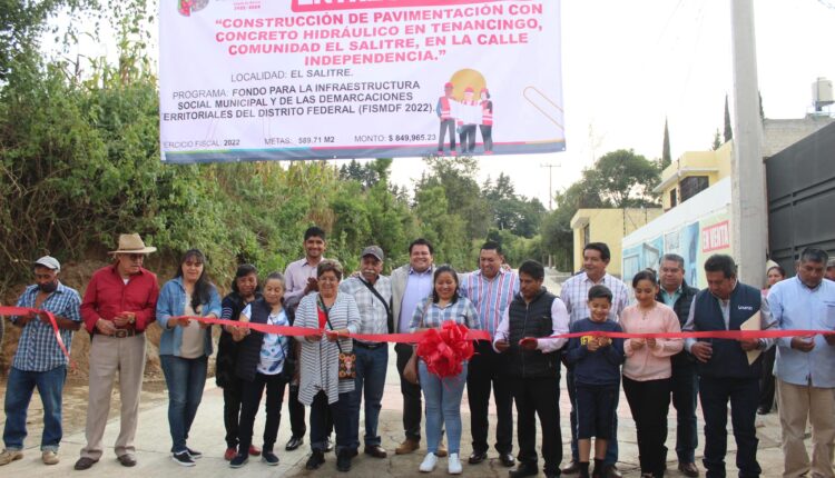 TENANCINGO, Estado de México.- «Al iniciar esta administración me comprometí al igual que las y los integrantes del cabildo, en trabajar a favor de poder cumplir todos y cada uno de los compromisos que hicimos con la ciudadanía y en especial en materia de obra pública» señaló el alcalde Héctor Gordillo Sánchez, al encabezar la inauguración de la pavimentación  con concreto hidráulico de la calle Independencia en el Barrio de “El Salitre”.