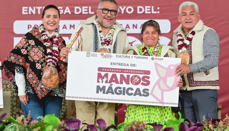 SAN FELIPE DEL PROGRESO, Estado de México. – Como parte de las nuevas políticas públicas que colocan en el centro a los pueblos originarios, el Gobierno del Estado de México ha entregado hasta el momento mil 191 apoyos a maestras y maestros artesanos de las regiones oriente, occidente y norte mazahua de la entidad, de un total de mil 900 que serán distribuidos en todo el estado a través del Programa Manos Mágicas 2025.