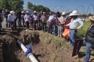 ● En San Martín de las Pirámides comenzaron la tecnificación de la Unidad de Riego para el Desarrollo Rural Santa Isabel, A.C., con una inversión superior a 1.5 millones de pesos, para optimizar el uso del agua en la producción agrícola local