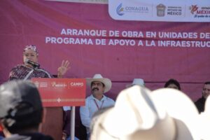De igual forma, en San Martín de las Pirámides se llevó a cabo el arranque de la tecnificación de infraestructura hidroagrícola en la Unidad de Riego para el Desarrollo Rural Santa Isabel, A.C., con una inversión de 1 millón 598 mil pesos.