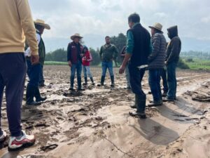 Durante el recorrido, se supervisaron las afectaciones en los campos de cultivo, se evaluaron los daños y se escucharon de primera mano las preocupaciones de las y los campesinos afectados, y se levantaron los reportes necesarios para iniciar con los apoyos correspondientes.
